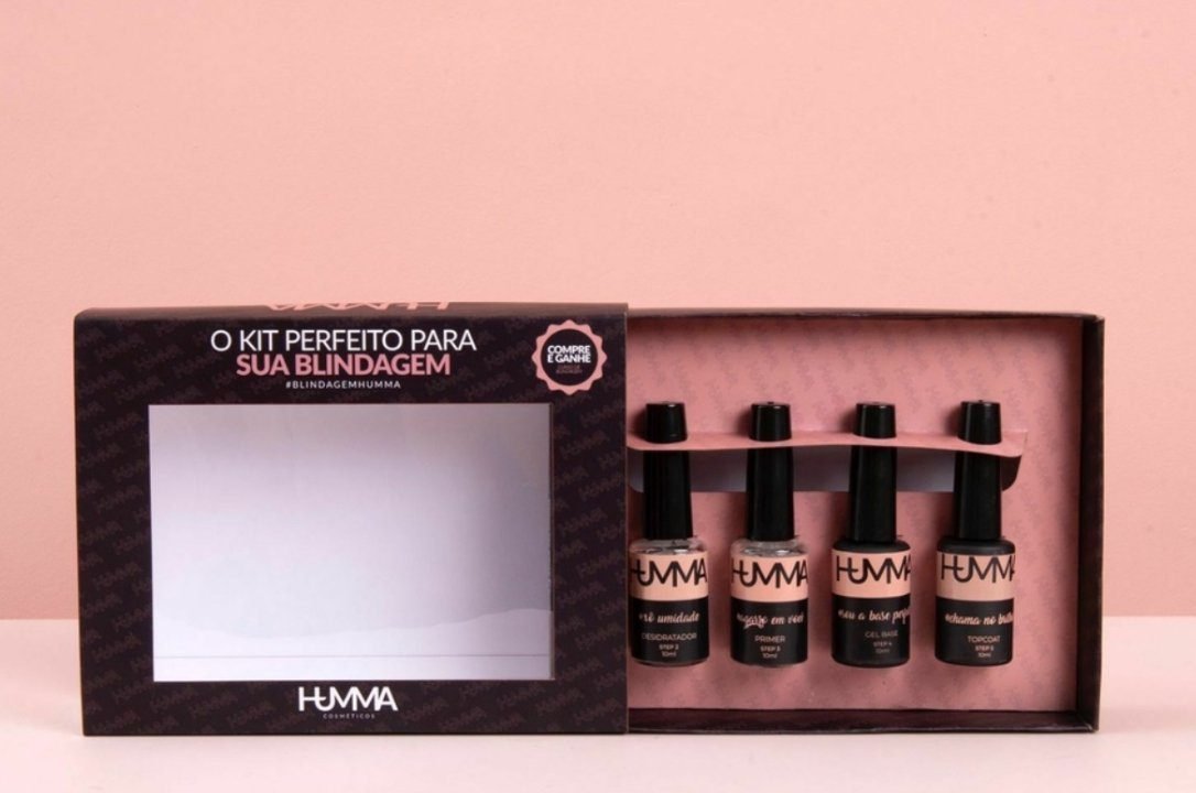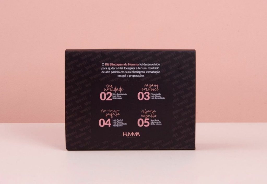 O Kit Blindagem de Unhas inclui: – 1 Desidratador 10ml – 1 Primer 10ml – 1 Gel Base 10ml – 1 Top Coat 10ml
