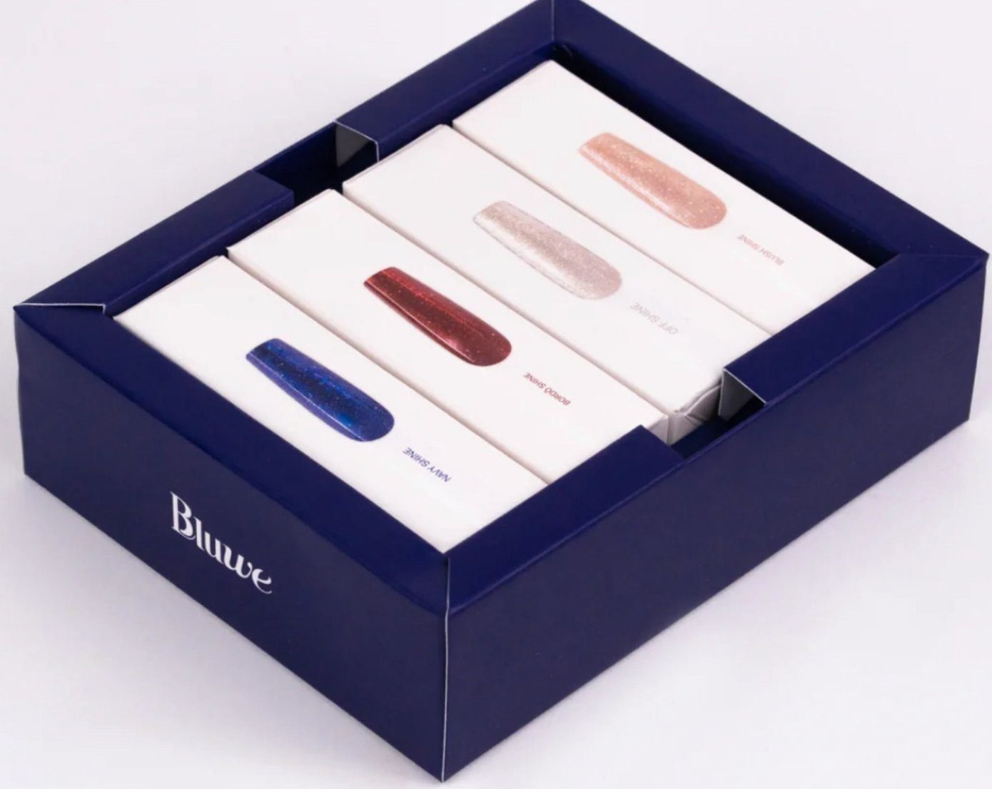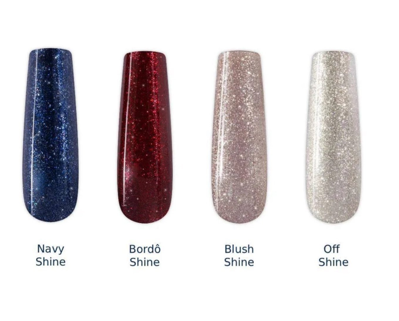 (Navy Shine, Off Shine, Blush Shine e Bordô Shine), cada um